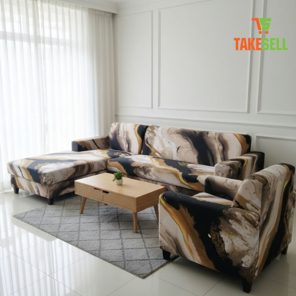 Luxury Gold Geometric Design Stretch Sofa Cover - Modern & Premium