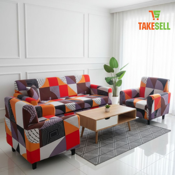 Modern Geometric Patchwork Sofa Cover Set - Colorful & Elastic